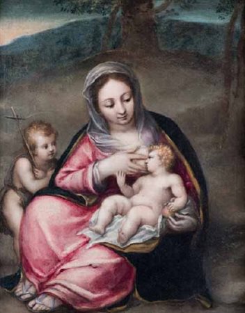 Lot 2 Marcello Venusti (cerchia) MADONNA CON BAMBINO olio su tela, cm 49x41. Si ringrazia il Dottor Andrea Donati per l’assistenza alla schedatura dell’opera.
