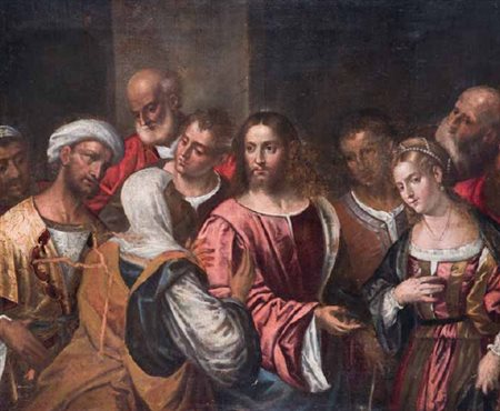 Lot 13 Scuola Veneta del XVII secolo INCREDULITÀ DI SAN TOMMASO olio su tela, cm 66x49.