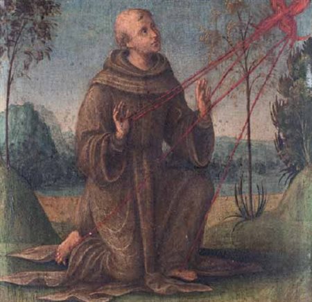 Lot 4 Lorenzo Costa Ferrara 1460 – Mantova 1535 A) SAN FRANCESCO CHE RICEVE LE STIGMATE B) SAN GIROLAMO PENITENTE tavola, cm 15,5x16. Al verso entrambe le tavole recano, a fuoco sul legno, la sigla: C G B C. Provenienza: Ferrara, Collezione Costabili Containi; Collezione privata. Bibliografia: AA. VV., Pitture della Raccolta del Co.te Gio Battista Costabili di Ferrara, Bologna, Biblioteca dell’Archiginnasio, ms. A1324 del 1835, c. 31v, n. 366 (cit.), c. 32r, n. 369 (cit.); G. Boschini in G. Baruffaldi, Vite dè pittori e scultori ferraresi, Ferrara 1844-1846, p. 123; G. Giordani, Catalogo de Quadri di varie scuole pittoriche nella Galleria Costabili in Ferrara, Bologna 1871-1872, nn. 384, 388 (cit.); E. Mattaliano, La collezione Costabili, Marsilio Editori, Venezia 1998, n. 64, 65, p. 51 (cit.); E. Negro, N. Roio, Lorenzo Costa 1460 – 1535, Artioli Editore, Modena 2001, Cat. n. 147-150. P., pag. 151 (cit.); Le due tavolette provengono dalla nota collezione del marchese Giovanni Battista Costabili, come testimonia la sigla impressa a fuoco al verso delle stesse. L’età napoleonica vide il consolidarsi dei possedimenti terrieri della famiglia Costabili Containi, ma anche un impegno politico del giovane Costabili. Solo a titolo di esempio, si rammenti il suo ruolo all’interno del governo della neo nata Repubblica Cisalpina (il 29 giugno 1797) quale membro del relativo Direttorio. A ciò si aggiunge l’attività di uomo di cultura, testimoniata dalle relazioni intercorse con esponenti di spicco dell’epoca, tra cui Vincenzo Monti, Leopoldo Cicognara e il conte Camillo Laderchi, professore di diritto romano e fi losofi a del diritto presso l’Università di Ferrara (che fu il principale consulente per le acquisizioni della quadreria assieme a Ubaldo Sgherbi). La raccolta di opere venne costruita intorno al lascito dello zio materno Francesco Containi – che allevò il giovane Giovanni Battista, rimasto orfano a soli sei anni –, ereditata nel 1778 e costituita da 240 dipinti circa. La prima testimonianza di catalogazione dell’intera collezione vide la luce con il manoscritto Pitture della Raccolta del Conte Gio Battista Costabili di Ferrara, in cui sono descritte 591 opere, con la relativa descrizione di soggetto, tecnica e dimensioni, oltre che dell’attribuzione. Per 127 di esse vi è anche l’annotazione “Era in Casa”, tra cui si annoverano le due tavolette qui presentate, che ebbero, all’epoca, l’attribuzione a Giovanni Battista Benvenuti, detto l’Ortolano. Nel 1835 il manoscritto venne donato a Gaetano Giordani, direttore della Pinacoteca di Bologna. Con la morte di Giovanni Battista Costabili, il 17 marzo 1841, la raccolta venne ereditata dal pronipote Giovanni, ed era costituita complessivamente da 624 opere.