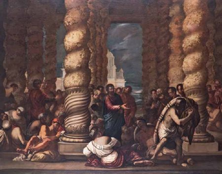 Lot 5 Scuola Veneta del XVII secolo PISCINA PROBATICA olio su tela, cm 175x223,5.