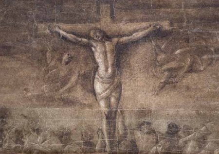 Lot 8 Gaudenzio Ferrari Valduggia 1475/1480 – Milano 1546 CROCIFISSIONE, 1535-1538 CIRCA schizzo a pennello con tocchi di biacca, cm 26,6x36,5. Provenienza: Milano, collezione privata. Esposizioni: Vercelli, Museo Borgogna, Mostra di Gaudenzio Ferrari, aprile – giugno 1956, n. 51. Bibliografi a: A. Bertini, I disegni di Gaudenzio, in AA. VV., Mostra di Gaudenzio Ferrari, Silvana Editoriale, Milano 1956, n. 51, tav. 105, p. 117; V. Viale, Gaudenzio Ferrari, Eri. Edizioni Rai Radiotelevisione Italiana, Torino 1969, n. 86, p. 68 (ill.). L’opera è in relazione con la grande Crocifissione (fi g. 1; tempera su tela, cm 172x174) custodita a Torino presso la Galleria Sabauda.