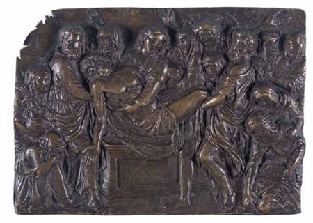 Lot 12 Scuola Veneta del XVI/XVII secolo DEPOSIZIONE NEL SEPOLCRO (da Andrea Riccio) bassorilievo in bronzo, cm 10,5x16,5.
