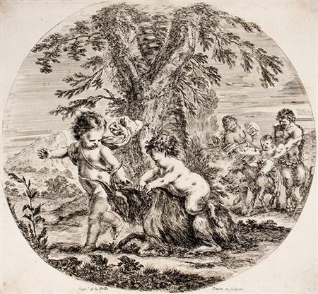 Lot 37 Stefano Della Bella, Putto e piccolo satiro che giuocano con una capra.