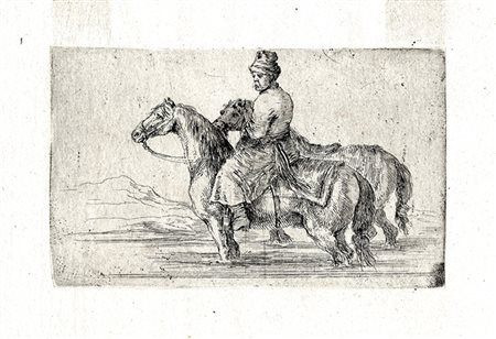 Lot 40 Stefano Della Bella, Scudiero polacco al fiume con due cavalli.
