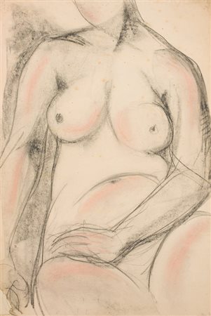 Lot 275 Riccardo Licata, Senza titolo, 1950 circa Tecnica mista su carta intavolata, cm. 74x50 Firma in basso al centro. Autentica dell'artista su foto.