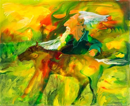 Lot 270 Giorgio Celiberti, Senza titolo, 1973 Affresco su tela, cm. 120x100 Firma in basso a sinistra.