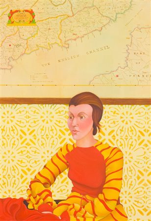 Lot 279 Paolo Giorgi, Intorno a Vermeer, 1971 Olio su tela, cm. 100x70 Firma in basso a destra. Timbro dello Studio f.22,Palazzolo sull'Oglio sul retro.