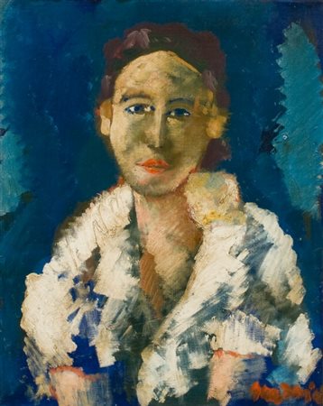 Lot 280 Oddino Guarnieri, Ritratto, 1950 Olio su cartone telato, cm. 50x40 Firma in basso a destra. Autentica dell'artista su foto. Timbro dello Studio d'Arte Guarnieri, Roncade sul retro.