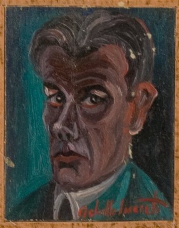 Lot 283 Achille Incerti, Autoritratto, Olio su cartone telato, cm. 10x8 Firma in basso a destra. Etichetta della Galleria Annunciata, Milano sul retro. Opera proveniente dalla storica Collezione Cesare Zavattini.