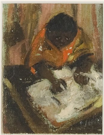 Lot 288 Beverly Pepper, Monday's washing (Lavandaia), 1953 Olio su tela, cm. 10x8 Firma in basso a destra. Opera della storica Collezione Cesare Zavattini. Bibliografia: E. Gribaudo (a cura di), "La raccolta 8x10 di Cesare Zavattini", Ed. d'Arte Fratelli Pozzo, Torino, 1967; AA.VV., Cesare Zavattini e la pittura, Galleria Lydia Palumbo Scalzi, Latina, 17 feb. - 14 apr. 2001; "Cesare Zavattini Collezionista. La raccolta 8x10 di Cesare Zavattini", a cura di Giorgio Di Genova ed Edoardo Brandani, Museo MAGI, Pieve di Cento (BO), p.80.