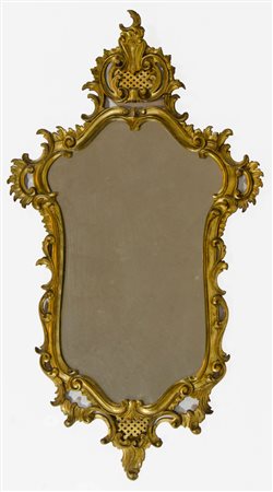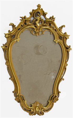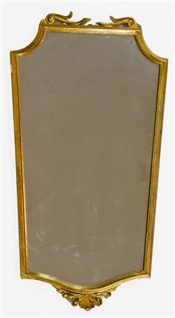 Lot 5 Grande specchio dorato con cimasa scolpita. cm. 126x76.
