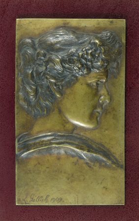 Lot 8 Altorilievo in bronzo raffigurante volto di donna di profilo. Firmato e datato 1909, cm. 17x10.