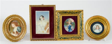 Lot 9 Lotto di vari miniature dipinte e incorniciate.
