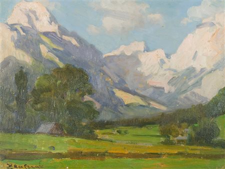 Lot 11 Giovanni Zangrando Trieste 1867-1941 "Il Monte Grintavec" cm. 26x35 - olio su cartone Firma non coeva b. a s.