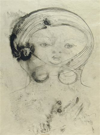 Lot 13 Joze Pohlen 1926 "Ragazza felice" cm. 50x35 - tecnica mista su carta Firmato b. a d. e datato 1961.