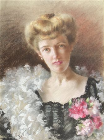 Lot 20 Eugenie "Gentildonna con fiori" cm. 68x47 - pastelli colorati Firmato b. a s.