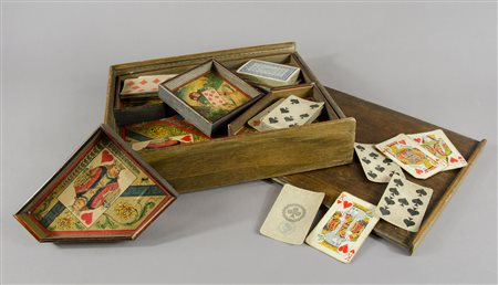 Lot 21 Antico gioco delle carte entro teca originale.