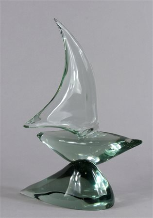 Lot 22 Scultura in vetro trasparente a forma di barca a vela. H. cm. 31.