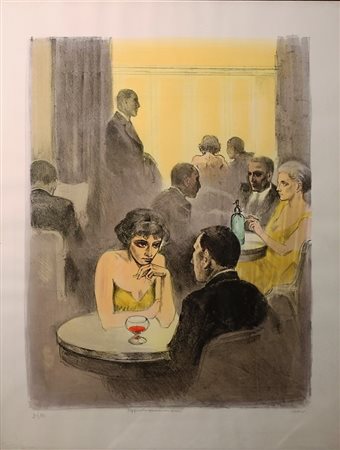 Lot 23 Alberto Sughi (Cesena 1928 - Bologna 2012) Senza Titolo Dim.80X60 Litografia acquerellata a mano dall’artista Esemplare 20/175 Tiratura in basso a sx Firmato in basso a dx