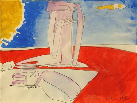 Lot 1 Valerio ADAMI (Bologna 1935-03-17 ) Senza titolo 1962 acquarello e tecnica mista su cartoncino cm. 36 x 48Data, firma "1962, Adami" (in basso a destra) Data, firma "1962, Adami" (in basso a destra) Autentica dell'artista su fotografia
