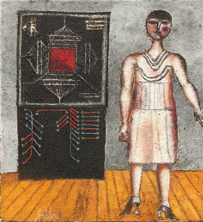 Lot 11 Franco GENTILINI (Faenza 1909-08-04 Roma 1981-04-05) Cibernetica 1962 olio su tela sabbiata cm. 55 x 50.5G. Appella "Gentilini. Catalogo generale dei dipinti 1923-1981", Edizioni De Luca, Roma 2000, p. 463, rep. 961Firma "Gentilini" (in basso a sinistra) Etichetta della galleria Adelphi, Padova (al retro) Firma "Gentilini" (in basso a sinistra) Etichetta della galleria Adelphi, Padova (al retro)