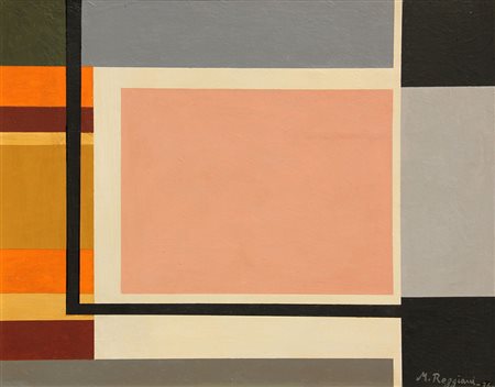 Lot 15 Mauro REGGIANI (Nonantola 1897-08-11 Milano 1980-05-19) Composizione N.17 1976 acrilico su tela cm. 40 x 50Firma, data "M. Reggiani, 76" (in basso a destra) Titolo, firma, data "Composizione N.17, M. Reggiani, 1976"; etichetta della Galleria d'Arte Moderna San Giorgio, Venezia; timbro della Galleria La Polena, Genova (al retro) Firma, data "M. Reggiani, 76" (in basso a destra) Titolo, firma, data "Composizione N.17, M. Reggiani, 1976"; etichetta della Galleria d'Arte Moderna San Giorgio, Venezia; timbro della Galleria La Polena, Genova (al retro) Autentica dell'archivio Mauro Reggiani su fotografia