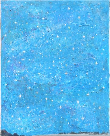 Lot 17 Natale ADDAMIANO (Bitetto 1943-05-12 ) Sera stellata 2015 olio su tela cm. 30 x 24Firma, data "Addamiano, 15" (in basso a destra) Titolo, firma, data, misure "Sera stellata, Addamiano, 2015, 24x30" (al retro) Firma, data "Addamiano, 15" (in basso a destra) Titolo, firma, data, misure "Sera stellata, Addamiano, 2015, 24x30" (al retro) Autentica dell'artista su fotografia