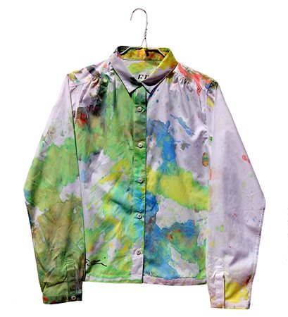 Lot 20 Shozo SHIMAMOTO (Osaka 1928-01-01 ) Felissimo 2007 camicia dipinta cm. 80 x 63Firma "Shimamoto" (in basso) Firma "Shimamoto" (in basso) Opera registrata presso l'Archivio Shozo Shimamoto (conferma per e-mail)