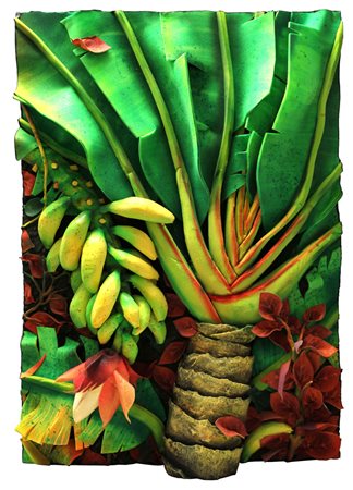 Lot 21 Piero GILARDI (Torino 1942-08-03 ) Palma da banane 2004 poliuretano espanso su tavola cm. 100 x 70Titolo, firma, data, numerazione "Palma de banane, Gilardi, 2004, 74/11" (al retro) Titolo, firma, data, numerazione "Palma de banane, Gilardi, 2004, 74/11" (al retro) Autentica dell'artista su fotografia, con n. 74/11