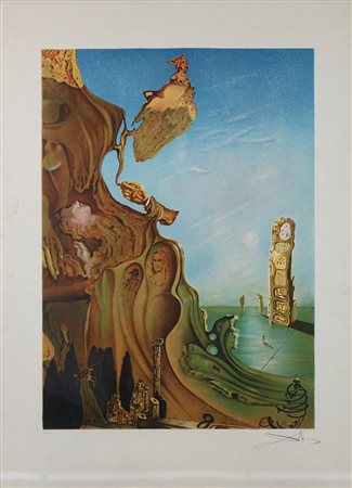 Lot 5 SALVADOR DALI, Monumento imperiale, Litografia a colori Dim. 58x41 Esemplare 83/100 Timbro e tiratura in basso a sx Certificato di autenticità e di provenienza Galleria d’ Arte Gissi su carta e su foto Timbro a secco in basso a sx Firmato in basso a dx