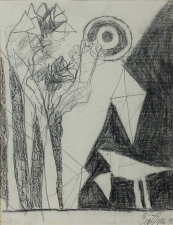 Lot 10 FRANCO GENTILINI, Paesaggio, Tecnica mista su carta Anno 1960 Dim.32x25 Autentica su foto Galleria d'Arte Pace Datato e firmato in basso a dx