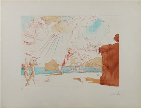 Lot 12 SALVADOR DALI, Apoteosi di Omero, Acquatinta Anno 1967 Dim. 50x66,5 Esemplare XIX/XXX Certificato di autenticità e di provenienza Galleria d’Arte La Bussola su foto Tiratura in basso a sx Timbro a secco in basso a sx Firmato in basso a dx
