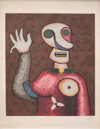 Lot 24 ENRICO BAJ, Senza titolo, Litografia Dim. 100x70 (presente leggera fioritura) Esemplare 31/250 Tiratura in basso a sx Firmato in basso a dx