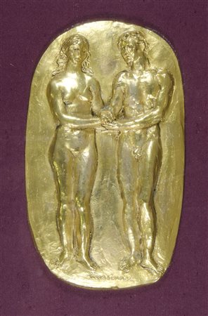 Lot 1 Francesco Messina 1900-1995 "Due figure" cm. 33x20 - bassorilievo in bronzo dorato Firmato al centro