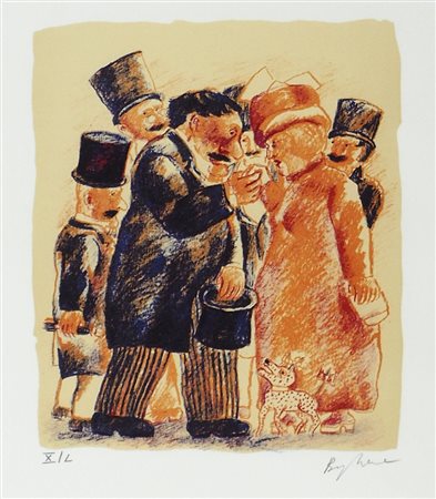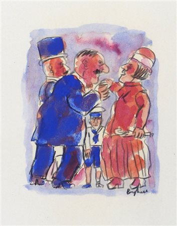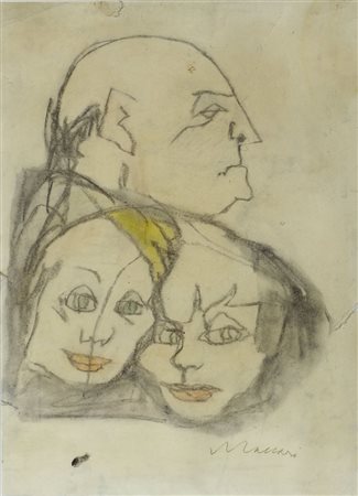 Lot 23 Mino Maccari Siena 1898 Roma 1988 "Tre teste" (1979) cm. 40x30 - tecnica mista su carta Firmato b. a d. Timbro a secco di Nemo Galleni. Autentica su fotografia Galleria Il Selvaggio Roma, Galleria Guerrieri Lucca e firma dell'Artista. Esposiz: Galleria Guerrieri Lucca 1982 e pubblicato nel relativo catalogo.