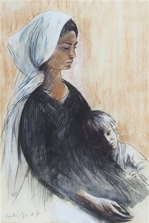 Lot 13 John Corbidge 1935-2003 "Maternità" cm. 100x70 - pastelli colorati Firmato b. a s.