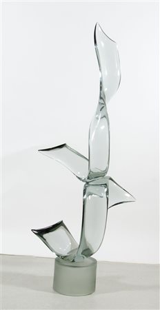 Lot 16 Pino Signoretto: grande scultura in vetro fumè a "code di delfini". Firmata sulla base. H. cm. 128. (lieve difetto).