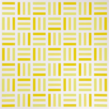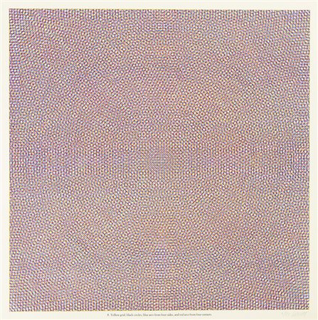 Black grid, red circles, yellow arcs from four sides, and blue arcs from four corners - 1972 -