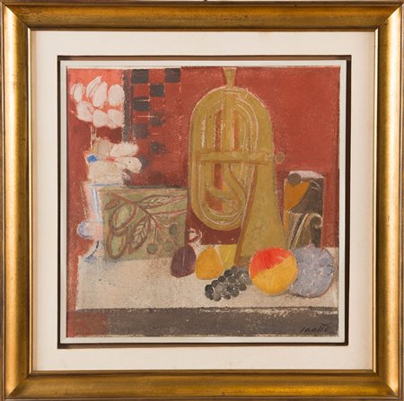 Lot 8 Affresco su tela, firmato in basso a destra Saetti, firma e iscrizione al retro ‘Saetti/Venezia/54x54/Questo dipinto non/deve essere verniciato’, H cm 54x54Al retro reca etichetta Galleria d’Arte Il Cavallino – Venezia e numero 4078. Opera accompagnata da certificato di autenticità della Galleria La Loggia Arte Contemporanea – Bologna. Bibliografia: Opera pubblicata in ‘Bruno Saetti – Catalogo dell’Opera Generale’ Volume primo, Edizioni Castaldi/Feltre, a cura di Franco Solmi, n. 512. Provenienza: Collezione Privata – Bologna.