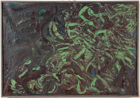 Lot 10 Olio su tela, firmato e datato in basso a destra Mandelli 76, al retro firmato, datato e titolato ‘P. Mandelli 1976/”paesaggio” 1976’, H cm 70x100Opera accompagnata da doppio certificato di autenticità su fotografia a firma Pompilio Mandelli nelle date: 20-5-94 e 16-5-1995.