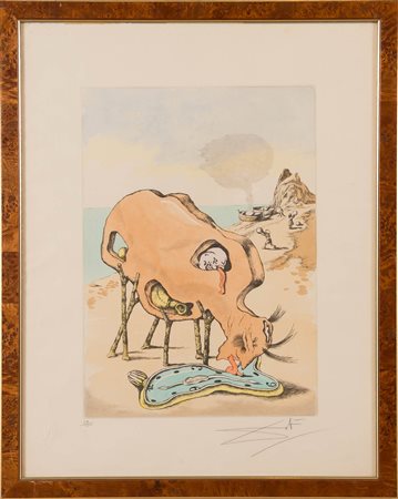Lot 19 Litografia a colori, firmata in basso a destra Dalì, numero di tiratura in basso a sinistra 27/150, timbri a secco, Lastra H cm 55x39