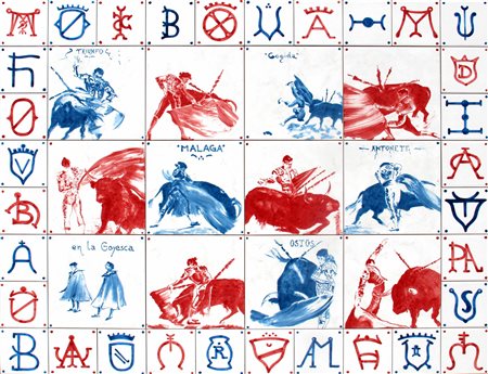 MONDINO Aldo, Azulejo 2004 pittura su ceramica cm. 80 x 100"Aldo Mondino. Catalogo generale vol. 1", a cura di Archivio Aldo Mondino, Allemandi editore, 2017, pp. 392-393Firma, data, titolo "Mondino, 2004, Azulejo";