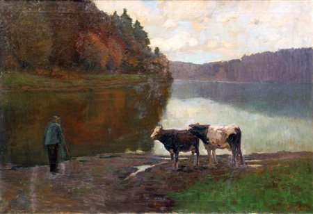 DE GRADA Raffaele, Paesaggio montano (Il lago di Oberblegsee) 1912 olio su tela cm. 75 x 110Firma "R. De Grada" (in basso a destra)