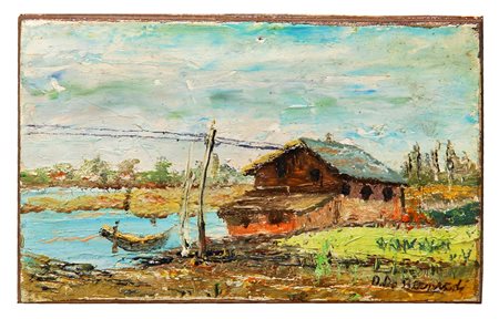 DE BERNARDI Domenico, Senza titolo olio su tavola cm. 8 x 12.5Firma "D. De Bernardi" (in basso a destra)