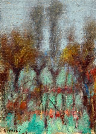 SOFFICI Ardengo, Bruma autunnale 1943 olio su tela cm. 21 x 15Firma, data "Soffici 43" (in basso a sinistra)