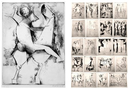 es. 9/60, cofanetto contenente 20 acqueforti firmate a mano dall’artista, edizione Luigi De Tullio di Milano