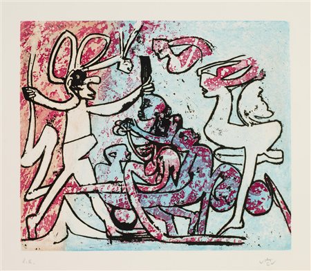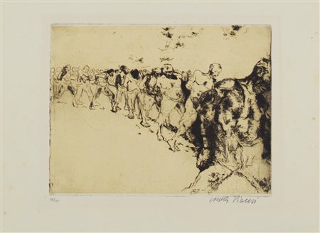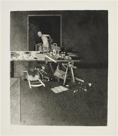 acquaforte-acquatinta, cm 29,5x34,5, foglio cm 56,5x53; es. p.a.
