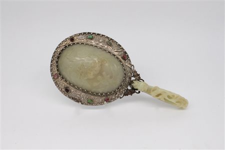 Frame with hard stone inserts and green jade handle