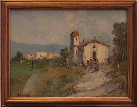 Paesaggio con chiesetta e figure