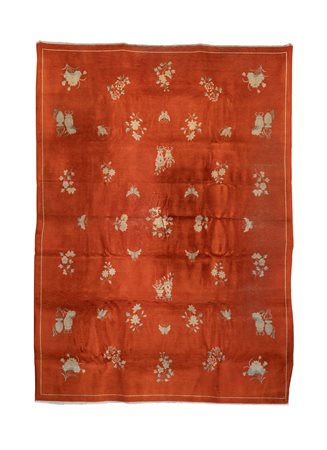 Lot 3 Tappeto cinese fondo corallo - decorato a tutto campo da fiori, vasi e farfalle. cm 245x340
